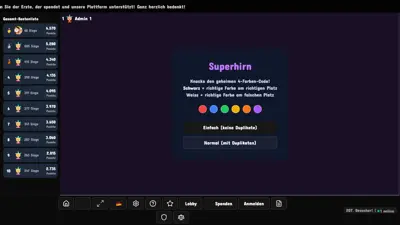 Superhirn online spielen auf MyWebGames by kemandai — kostenlos und direkt im Browser. Entwickelt in Hamburg, Deutschland. Spiele jederzeit und ueberall — ohne Download oder Installation.